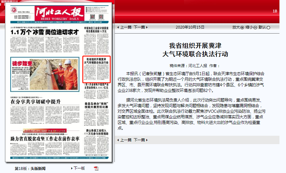 自9月1日起,联合天津市生态环境保护综合行政执法总队,组织开展了为期近一个月的大气环境联合执法行动,重点围绕冀津交界区、市、县开展环境联合帮扶执法。行动共排查廊坊市辖4个县区、6个乡镇的涉气企业238家次,发现并帮助企业整改环境违法问题82个。