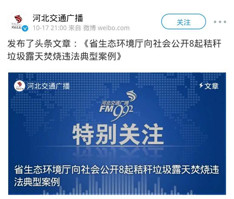 河北交通广播微博:成人视频 向社会公开8起秸秆垃圾露天焚烧违法典型案例