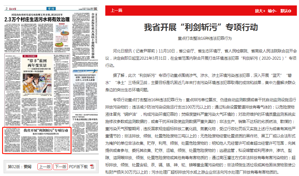 河北日报讯(记者尹翠莉)11月10日,省公安厅、成人视频 、省人民检察院、省高级人民法院联合召开会议,决定自即日起至2021年3月31日,在全省范围内联合开展打击环境违法犯罪“利剑斩污(2020-2021)”专项行动。