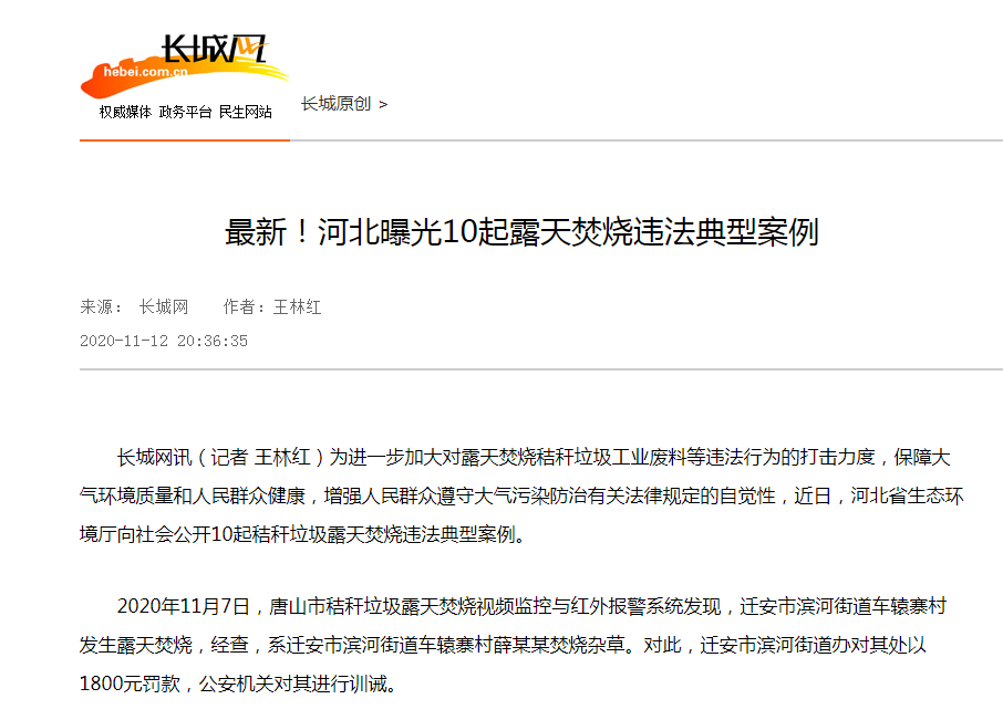 长城网:最新!河北曝光10起露天焚烧违法典型案例