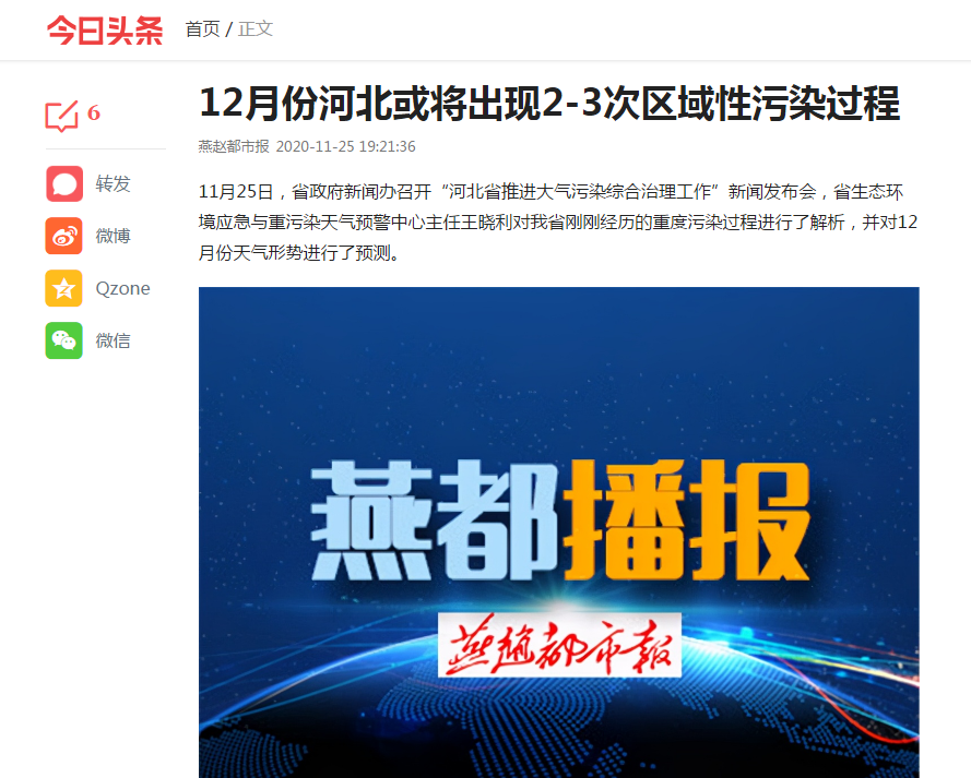 燕赵都市报:12月份河北或将出现2-3次区域性污染过程