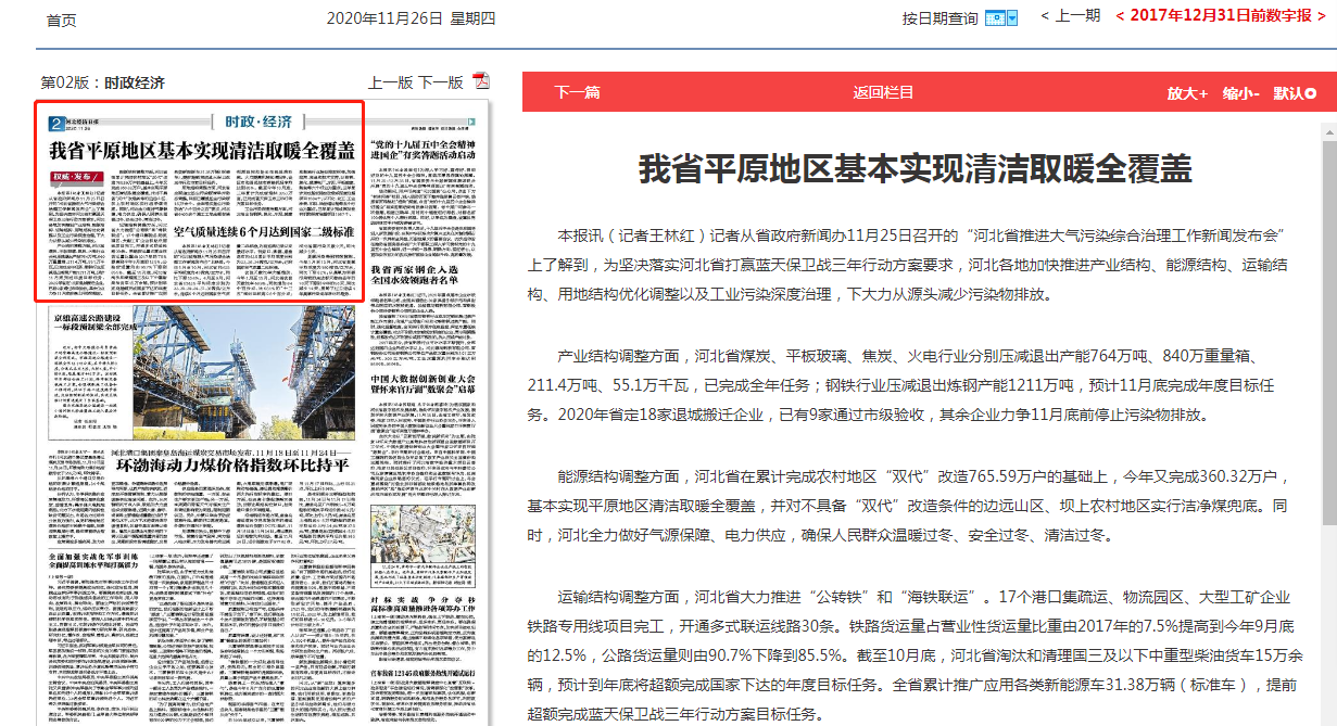 河北经济日报:我省平原地区基本实现清洁取暖全覆盖