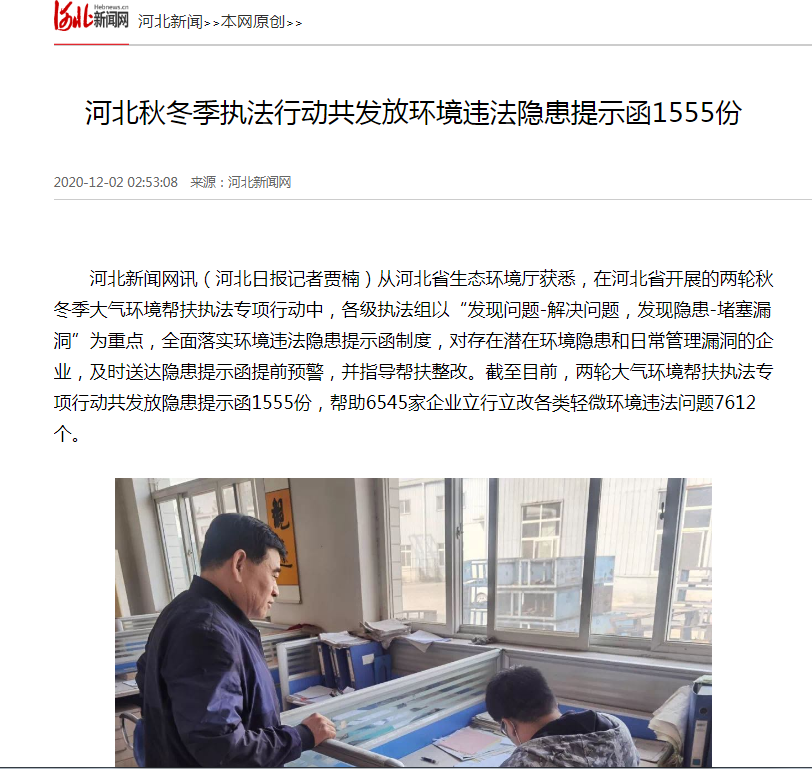 河北新闻网:河北秋冬季执法行动共发放环境违法隐患提示函1555份