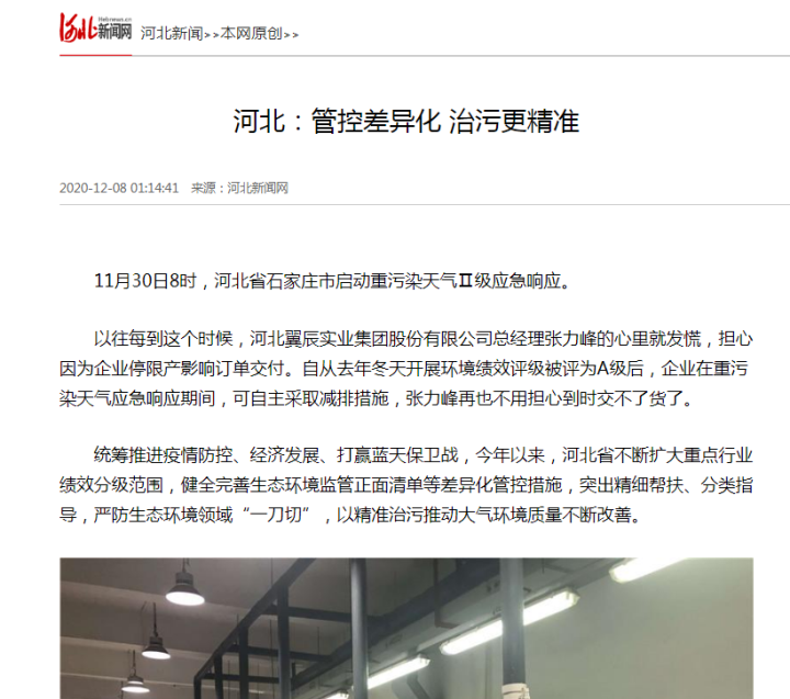 统筹推进疫情防控、经济发展、打赢蓝天保卫战,今年以来,河北省不断扩大重点行业绩效分级范围,健全完善生态环境监管正面清单等差异化管控措施,突出精细帮扶、分类指导,严防生态环境领域“一刀切”,以精准治污推动大气环境质量不断改善。