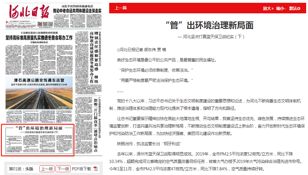 深入学习贯彻习近平总书记重要讲话和党的十九届五中全会精神,省委九届十一次全会提出,我省将依法铁腕治理污染和加快修复生态,全面建设天蓝地绿水秀的美丽河北。