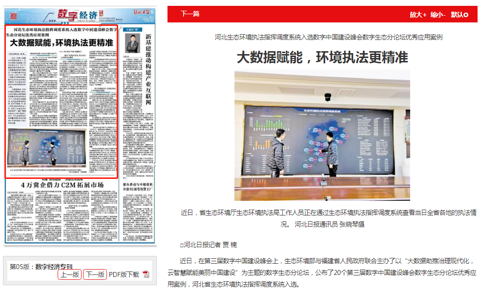大数据赋能,生态环境执法更精准、高效。生态环境执法指挥调度系统整合优化移动执法APP、污染源动态数据库、在线监测等信息资源,实时对接省、市、县三级执法机构和执法人员,实现了全省生态环境系统的“一键式”管理和执法工作的“透明化”运行,为扎实推进经济高质量发展和生态环境高水平保护提供了有力科技支撑。