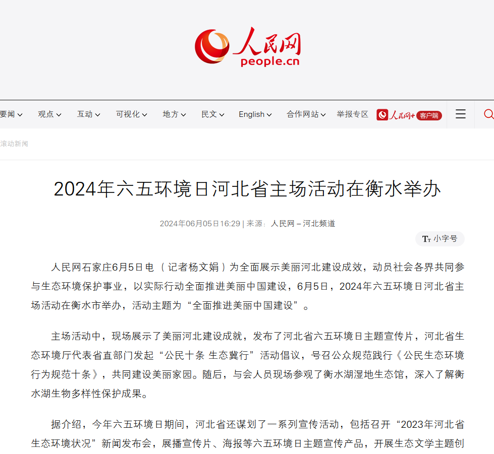 人民网:2024年六五环境日河北省主场活动在衡水举办