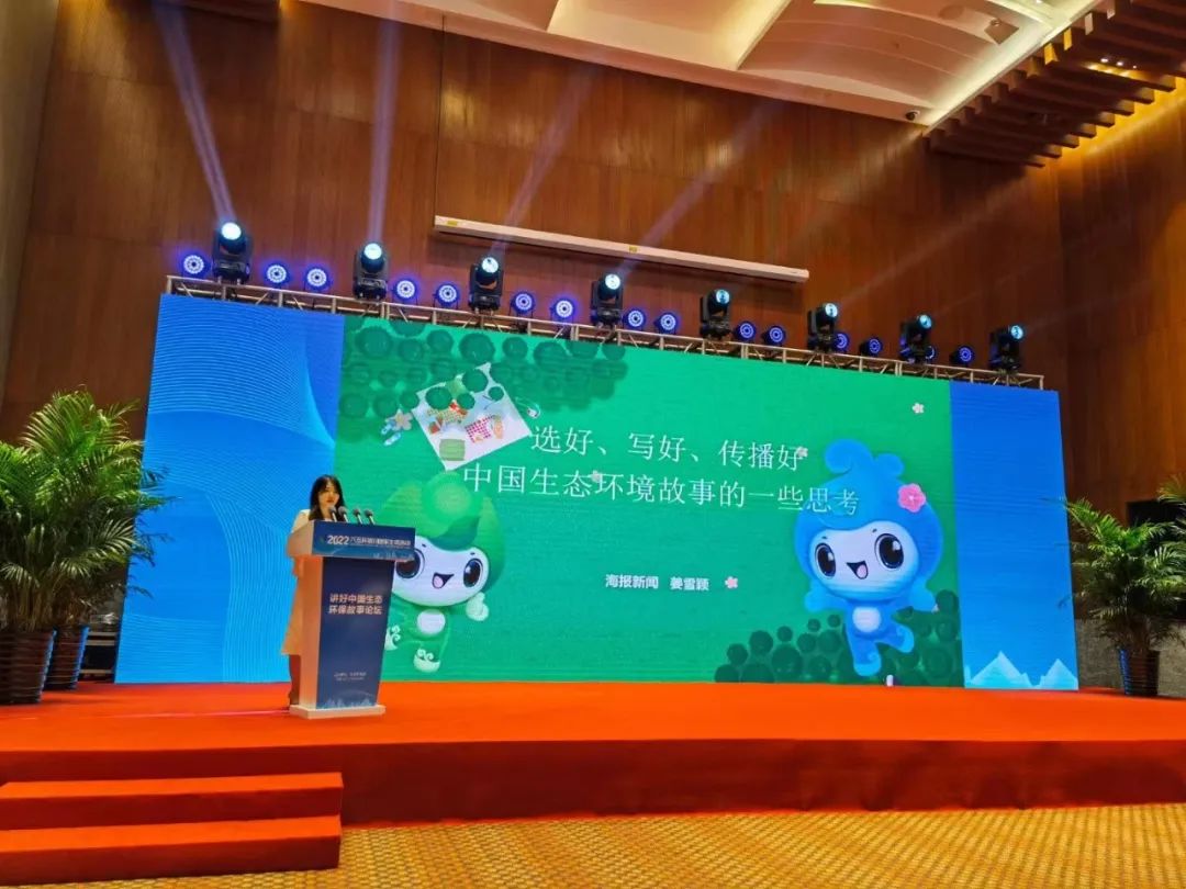 2022年六五环境日国家主场活动共举办5个系列平行论坛,图为首届“讲好中国生态环保故事”论坛现场嘉宾演讲