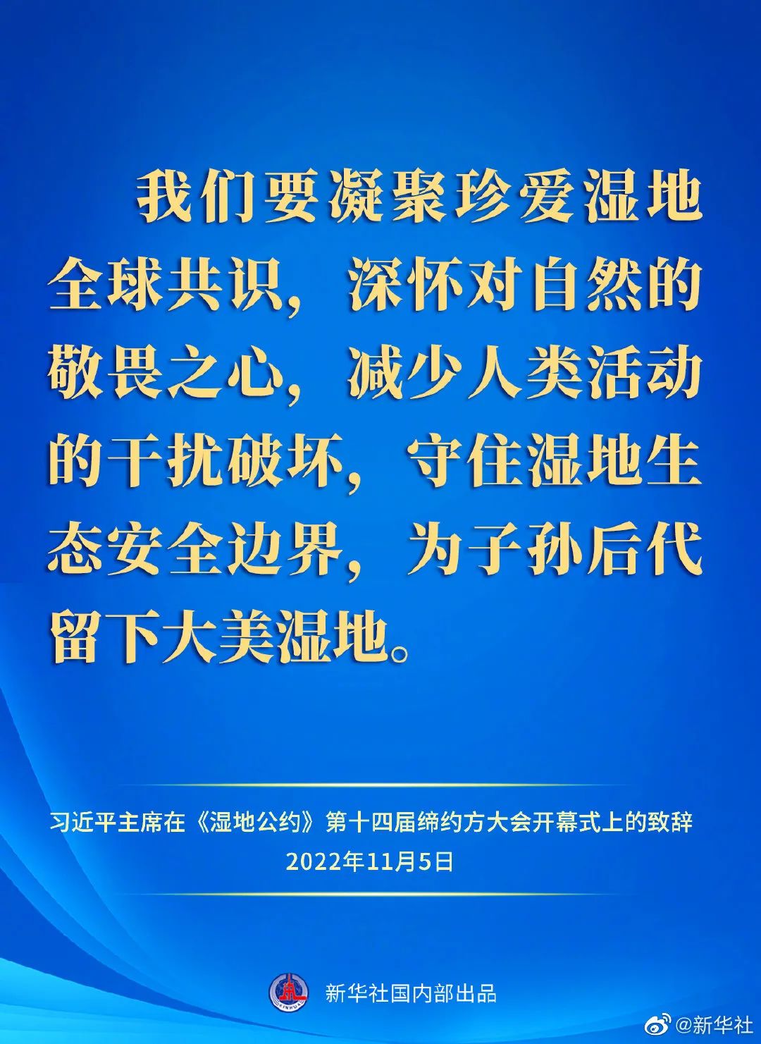 ——要凝聚珍爱湿地全球共识,深怀对自然的敬畏之心,减少人类活动的干扰破坏,守住湿地生态安全边界,为子孙后代留下大美湿地。