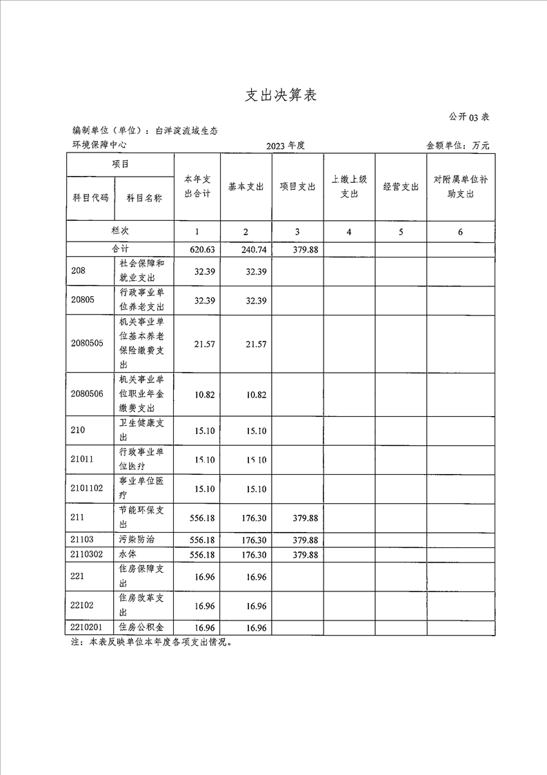 467037白洋淀流域生态环境保障中心2023年度单位决算公开文本