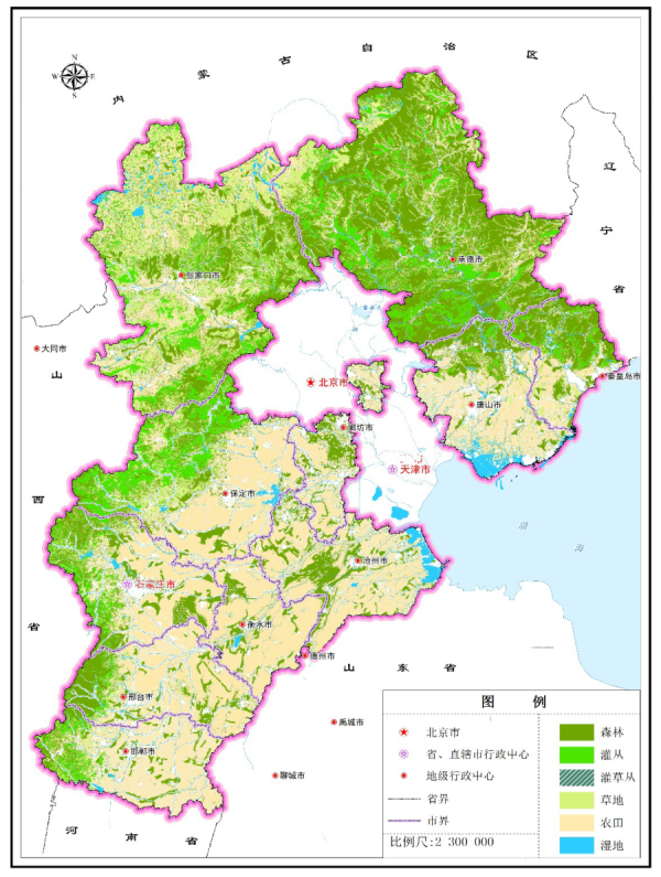 根据河北省地形地貌及生物多样性分布特点,重点区域包括两区(坝上高原区、滨海区)、两山(太行山、燕山)、两湖(白洋淀、衡水湖)。