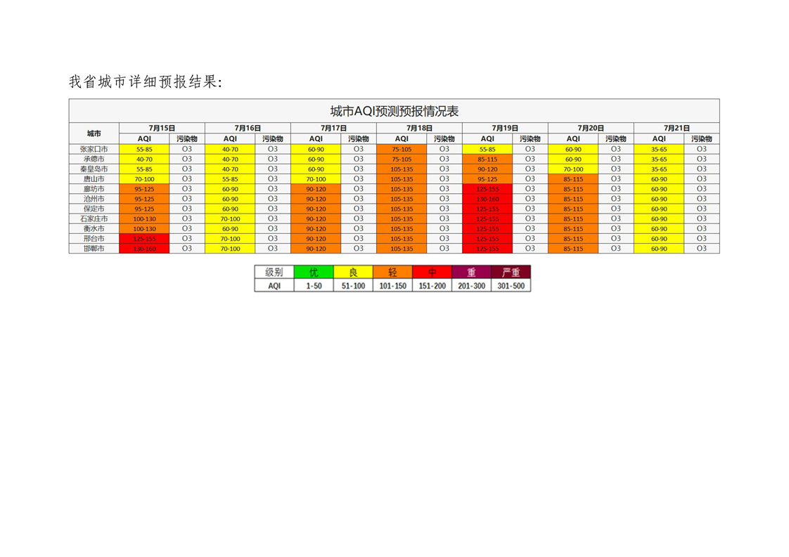 河北省空气质量预测报告周报2025年第29周