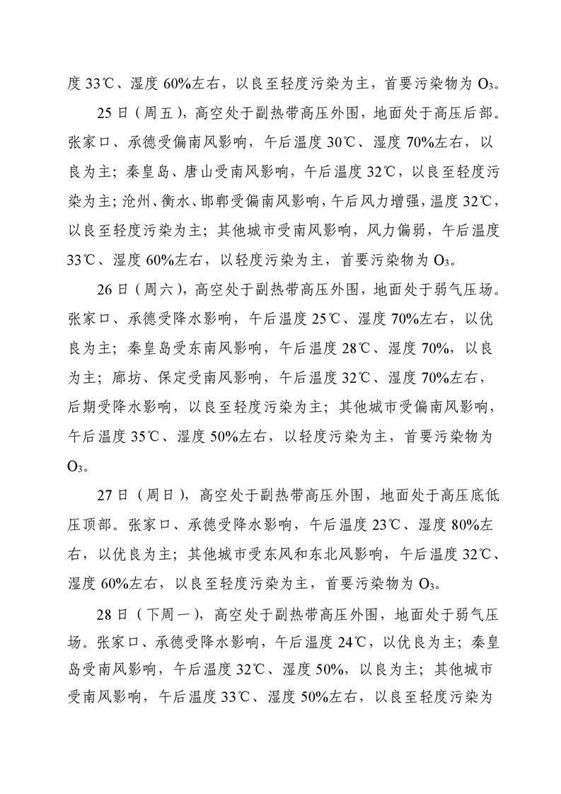 河北省空气质量预测报告(周报)2025年第30周
