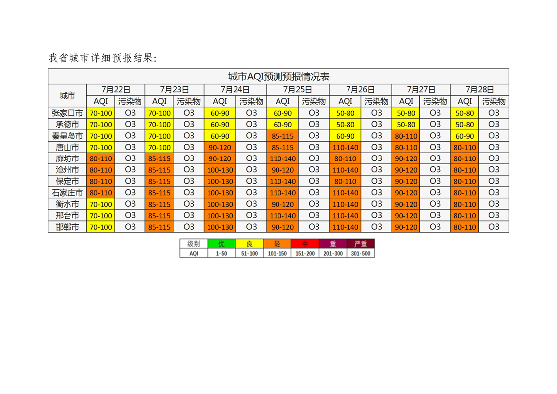 河北省空气质量预测报告(周报)2025年第29周