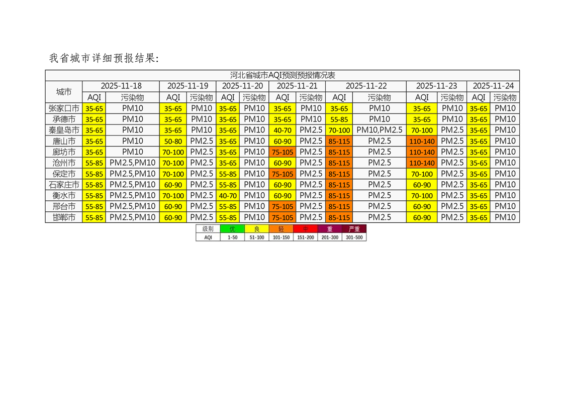 河北省空气质量预测报告(周报)2025年第46周