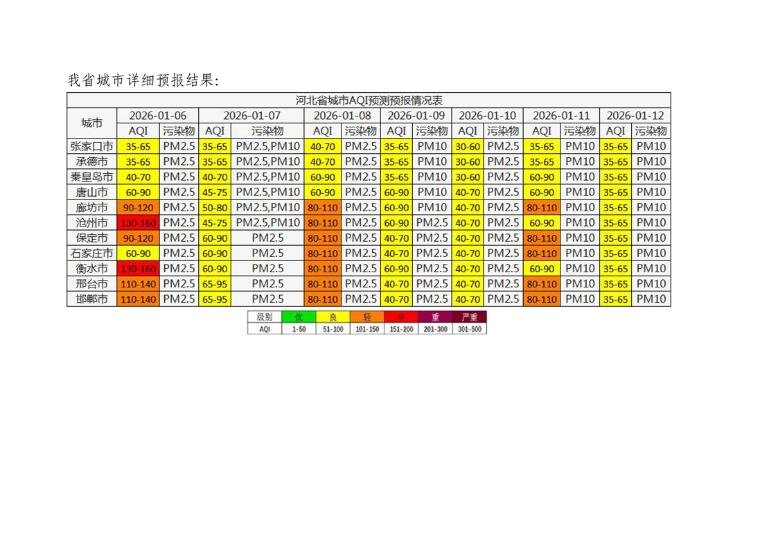 河北省空气质量预测报告(周报)2026年第2周