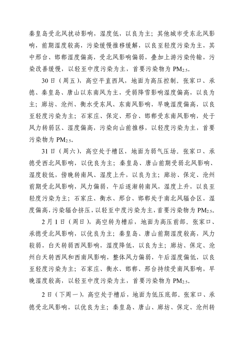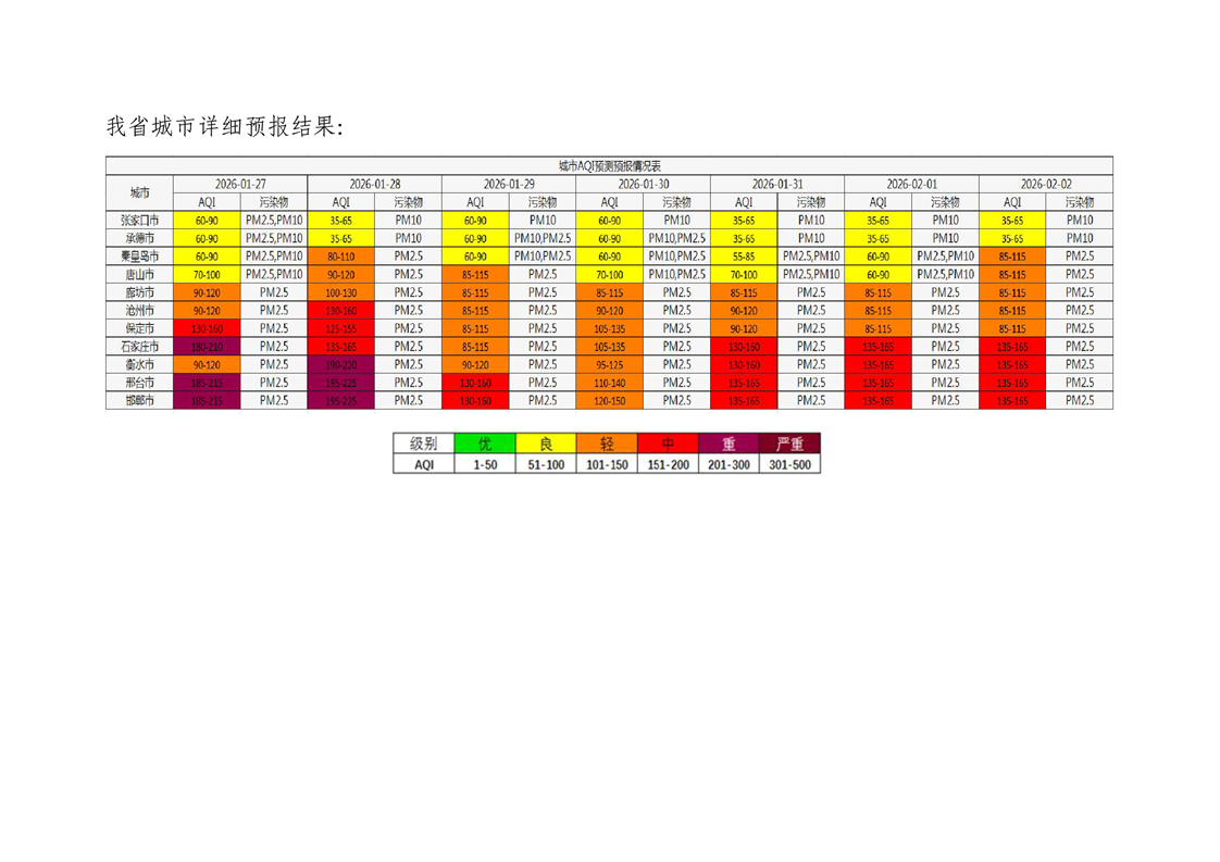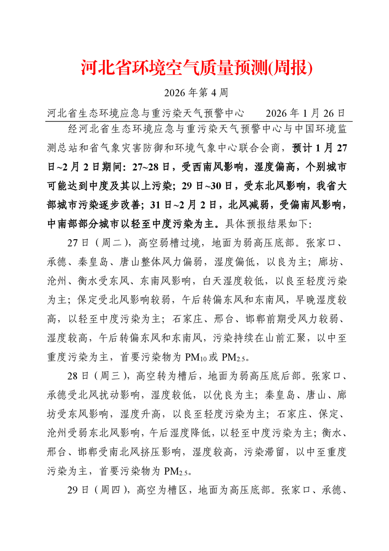 河北省空气质量预测报告周报2026年第4周